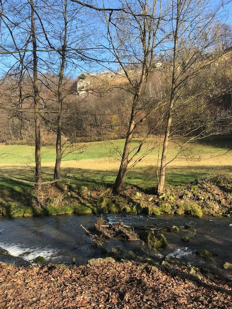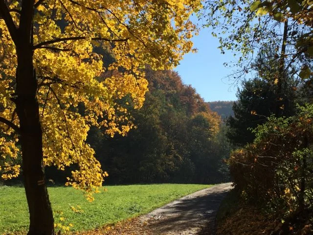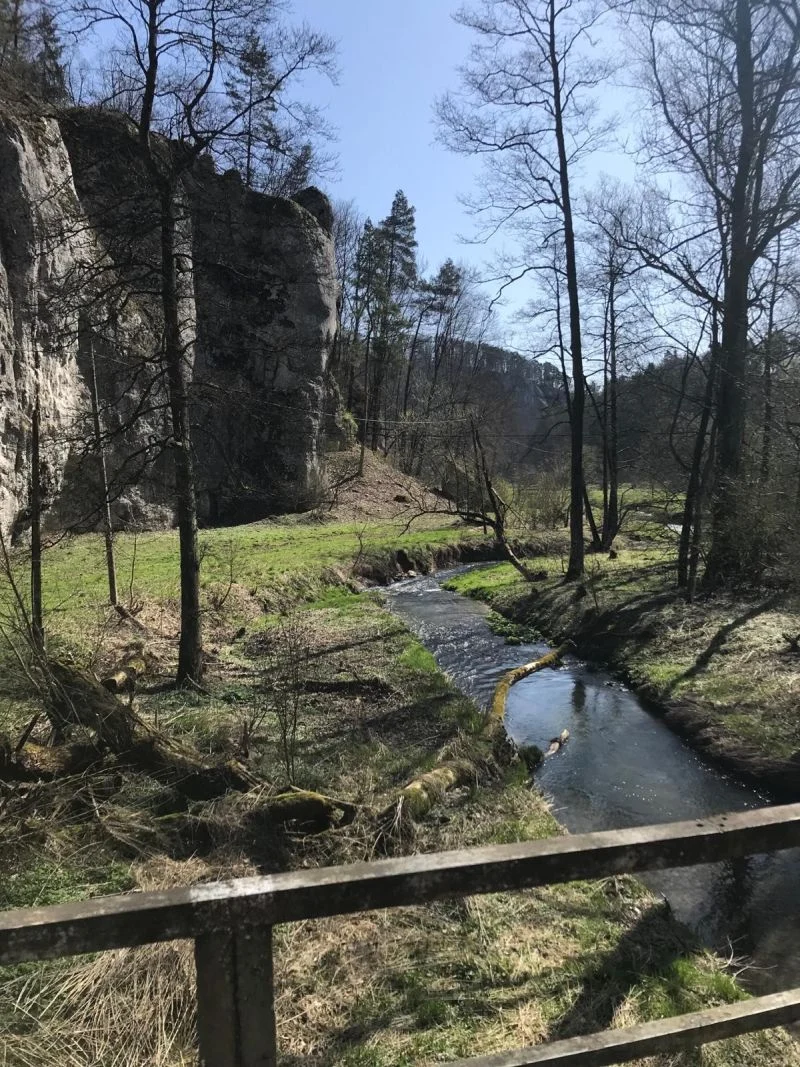 To jedna z moich ulubionych tras rowerowych, do której mam ogromny sentyment. Przejechałam ją już tam i z powrotem pewnie setki razy. O każdej porze roku (zimą jednak przemierzam ją na piechotę) – przepiękna, ale chyba najbardziej malownicza jest jesienią. Kolorowe liście drzew na tle wyglądających zza nich białych skał Wyżyny Krakowsko – Częstochowskiej w Dolinie Prądnika robią wrażenie. Prądnik jest tam zresztą uroczy, czysty wijąc się wzdłuż trasy raz po prawej, a raz po lewej stronie. Po drodze łąki, lasy, klimatyczne zabudowania w niewielkiej ilości, nie zawiązane na łańcuchach psy, z którymi znamy się z widzenia oraz kawiarenka. W samym Ojcowie można zrobić przystanek na pyszny żurek lub barszcz w Piwnicy pod Nietoperzem albo zjeść cokolwiek innego, w którejś coraz liczniej powstających tam knajpek, restauracji czy kawiarni.