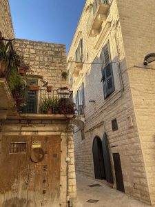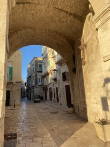 Molfettę określiłam prowincjonalną, ale używając tego słowa mam na myśli same pozytywne cechy życia na prowincji. Nie jest popularna wśród innych znanych miast włoskiej Apulii. Jest jednym z największych miast w prowincji Bari i była zamieszkana już w okresie neolitu. Ma sporo pięknych budowli – głównie sakralnych – których we Włoszech jest ogromna ilość. Stare Miasto pełne jest uroczych uliczek i kamienic, których żółtawy kamienny kolor ożywiają kolorowe okiennice, drzwi, tabliczki i kwiaty. Nie brakuje restauracji i mniejszych knajpek, barów i sklepików, które po sjeście tętnią życiem. Miasto ma też spory port – już w średniowieczu Molfetta stawała się strategicznym miejscem morskiej wymiany handlowej.