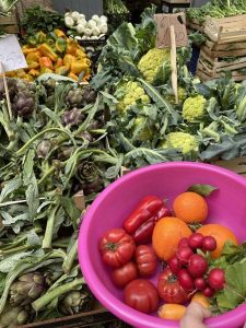 Jednak na osobną opowieść zasługują tamtejsze sklepo – stragany owocowo – warzywne. Ten, który odwiedzałam prawie codziennie, to ulokowany może 100 metrów, od miejsca, w którym mieszkałam. Mogłabym się żywić wspaniałymi smakami pochodzącymi z niego przez cały tydzień pobytu, jeśli nigdzie z Molfetty bym nie wyjeżdżała. Niektórych owoców i warzyw nie byłam w stanie zidentyfikować. Z boku straganu stał stosik zwykłych, plastikowych misek (takich do prania), z którymi chodziło się między ladami, półkami i do których wkładało się produkty. Z misek tych sprzedawca wyciągał wybrane warzywa i owoce do ważenia.
