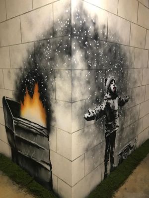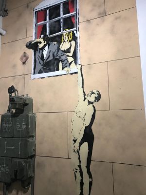 Stała wystawa Banksy’iego. Artysta, graficiarz, jeden z najsłynniejszych na świecie, a o którym niewiele wiadomo. Po cichu wymalowuje swoje poglądy na murach dużych miast świata. Zwracający uwagę na wszelkie zła tego świata, współczesnego życia – krzywdę zwierząt i dzieci, niszczenie środowiska, wojny itd. Punktuje paradoksy, obłudę. Wielki przeciwnik konsumpcjonizmu – paradoksalnie jego dzieła (grafiki, obrazy) są sprzedawane bez jego potwierdzenia i udziału za miliony euro. To co robi, robi w ciemności nocy, nie szuka poklasku – np. zafundował budowę statku, który miał przewozić emigrantów przez morze, aby uniknąć ich tonięcia. Poruszyła mnie ta wystawa. Czasami jego graffiti bywają też zabawne.