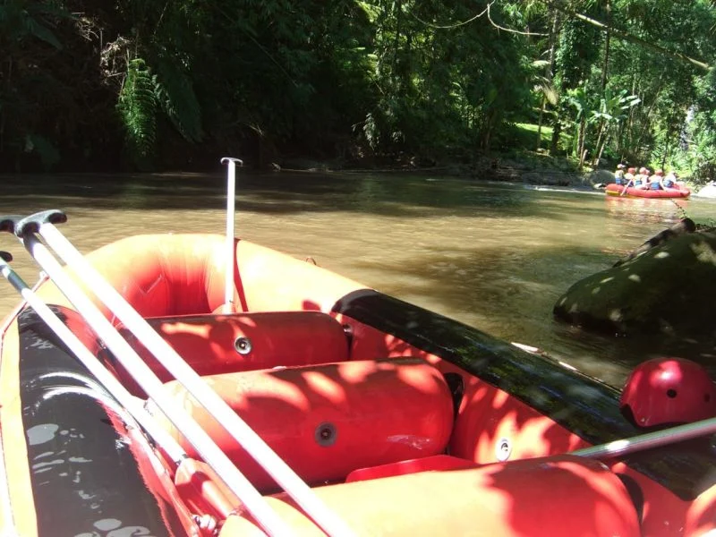 To była moja pierwsza przygoda z raftingiem. Jako, że było to w 2011 roku, niestety nie pamiętam szczegółów (np. nazwy rzeki, którą spływaliśmy). Najpopularniejsze rzeki, które są w stanie dostarczyć dużo emocji to: Unda, Balian, Ayung i Telaga Waja. Mogła to być więc jedna z nich. Rafting w tamtych rejonach to naprawdę niezapomniana przygoda. Jest dużo spiętrzeń, głazów i co za tym idzie zwrotów akcji, a to w raftingu najlepsze. Rzekę otacza na wielu odcinkach prawdziwa dżungla z tropikalnymi lasami deszczowymi. Wokół skaczą małpy, rosną bananowce, zwisają liany. W spokojniejszych odcinkach tej wodnej podróży można zobaczyć tarasy ryżowe albo wsłuchać się w egzotyczne odgłosy dżungli. Cudne przeżycia – nie trzeba być bardzo doświadczonym – wystarczy jako taka sprawność fizyczna, szczypta odwagi i gotowość na wyzwania.