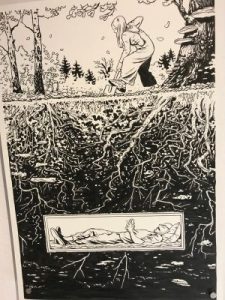 Bardzo ciekawa wystawa. Pomieszanie komiksu, mangi i sztuki gotyckiej, a to wszystko w przeplatanej scenerii Hongkongu, Japonii i Polski (Krakowa). W znane mi z podróży i z miasta, w pobliżu którego mieszkam, dokładne miejsca, artysta wplątał postacie z komiksów i mangi oraz innej sztuki. I zrobił to w niewiarygodnych konfiguracjach. Niesamowite pomysły, bardzo ciekawe wykonanie. Każda grafika, obraz czy plakat – zaskakujący w każdym szczególe. Nigdy nie pomyślałabym, że rzecz, którą wcale się nie interesuję (czyli mangą czy komiksami), tak mnie wciągnie, zaczaruje. Oprócz prac, w innej sali również cały warsztat artysty – szkice, przedmioty, narzędzia, stół kreślarski.