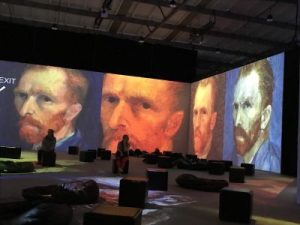 Wystawa, która krąży po całym świecie. Zawitała do Krakowa. Przepiękna rzecz. Obrazy – owszem – to normalne. Ale również google VR i słuchawki oraz zatopienie się w obrazy artysty – coś przepięknego i niesamowitego. Wchodzisz do pokoju Vincenta, wędrujesz wśród łanów zbóż albo przechadzasz się uliczkami francuskiego miasteczka i wchodzisz do knajpki. A potem kolejna sala wielkiego hangaru – obrazy w ruchu na ogromnych ścianach. Bardzo to było piękne przeżycie.