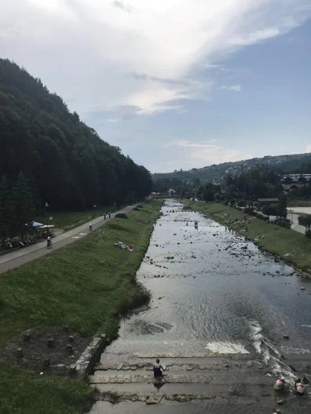 Tam jest po prostu przepięknie. Trasa w zdecydowanej większości biegnie wzdłuż rzeki Dunajec. Zaczynam pod wyciągiem krzesełkowym na Palenicę, jadę trasą przez centrum Szczawnicy, mijam kawiarenki, restauracje i niewielkie progi rzeczne, a w miarę rozszerzania się rzeki – kajaki, pontony i tratwy flisackie. Powoli wjeżdżam na bardziej zalesiony teren, a zarazem do Pienińskiego Parku Narodowego. Mijam pieszą granicę ze Słowacją. Pierwszą połowę wycieczki kończę u podnóża Czerwonego Klasztoru w Słowacji. Tam można odpocząć – szczególnie na dość dzikiej, kamienistej plaży. Wracam tą samą trasą – do Szczawnicy.